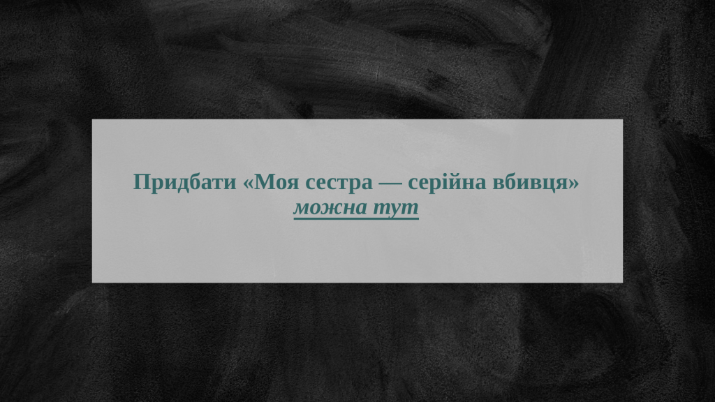 Як це — бути мовчазною помічницею у вбивствах, бо так диктує сімейний обов’язок? Оїнкан Брейтвейт у своєму романі пропонує новий ракурс для трилеру: історія розгортається не з перспективи злочинця чи жертви, а через погляд сестри — Коріді, яка щоразу вимушена буквально відбілювати наслідки вчинків Айоли. Доповнює сюжет насичення тексту словами і традиціями народу йоруба. Разом із тим, у романі поміж рядків типового жанрового трилеру розкриваються й доволі важливі теми.
